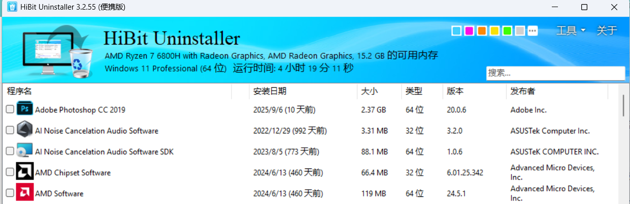 卸载软件的方法和Geek一样,但是可以勾选应用进行批量卸载,其余功能可以点击工具进行选择(只展示一部分):