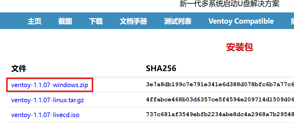 官方 Ventoy 下载页(根据电脑操作系统版本下载Ventoy)